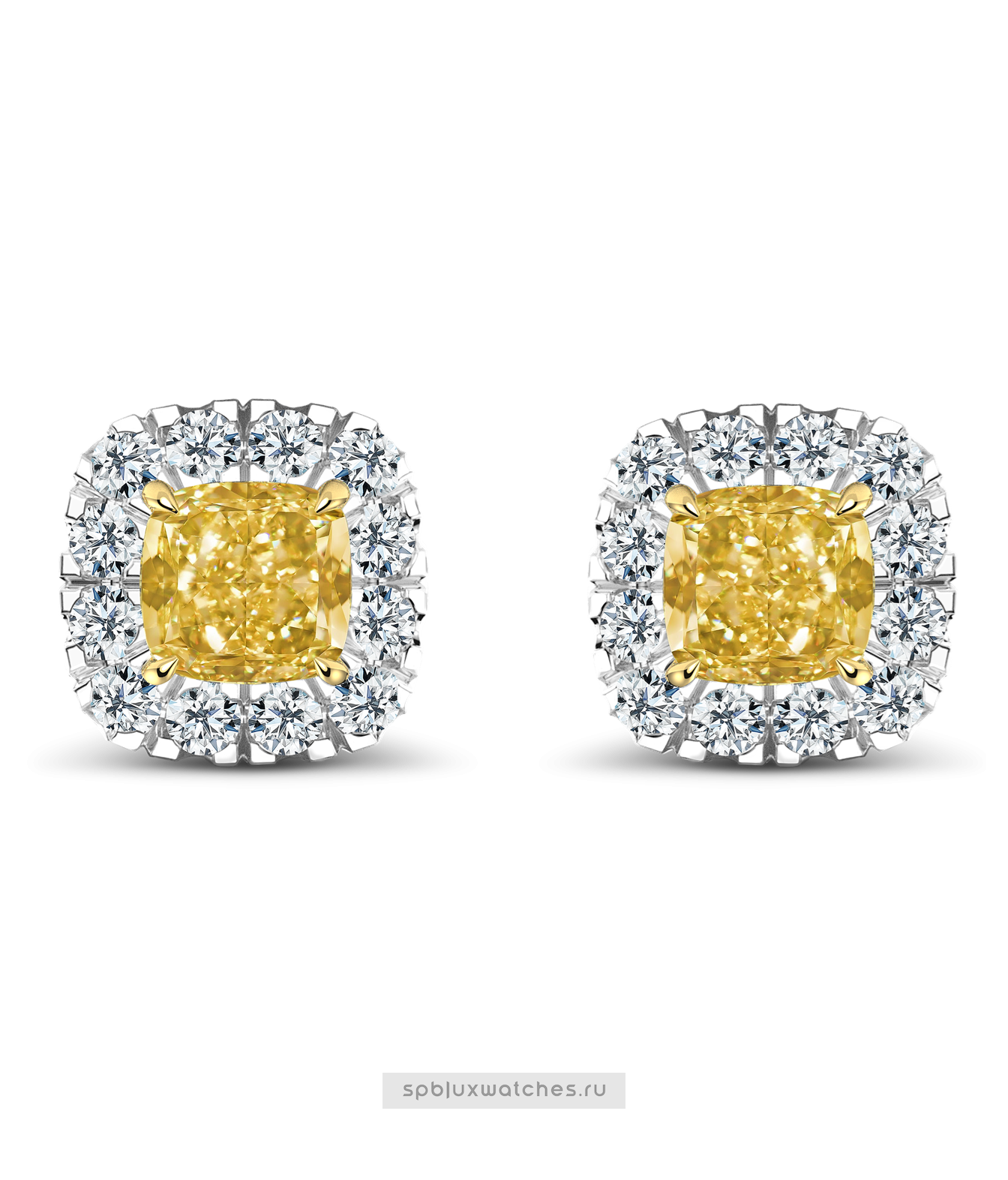 Пусеты выполнены из белого и желтого золота 750-й пробы, украшены 26 лабораторными бриллиантами общей массой 3.14 карат
