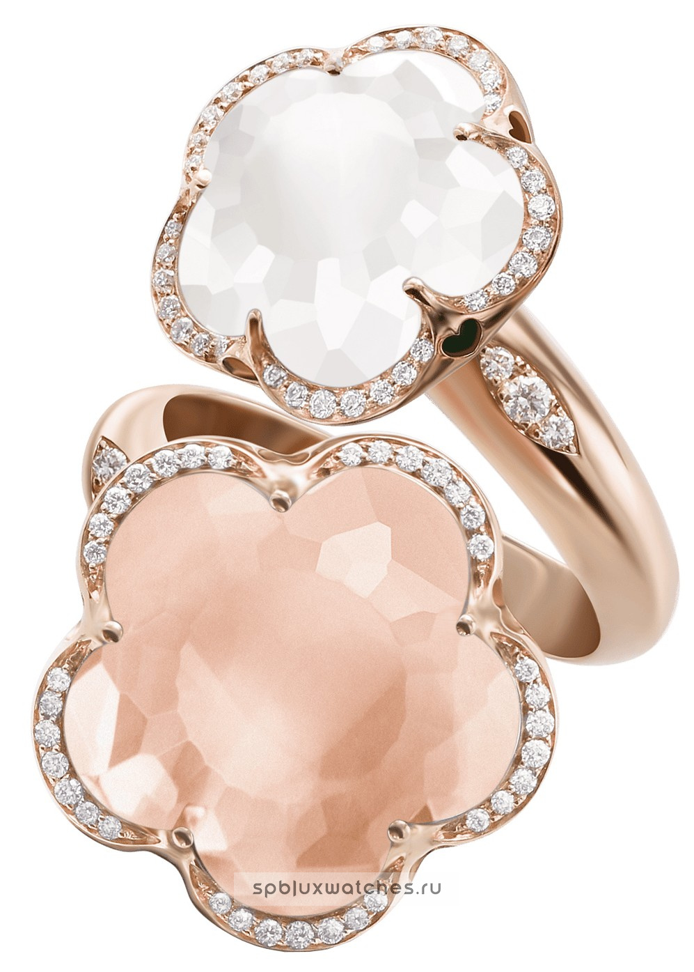 Белые бриллианты 0.24 карата, розовый и молочный кварц -