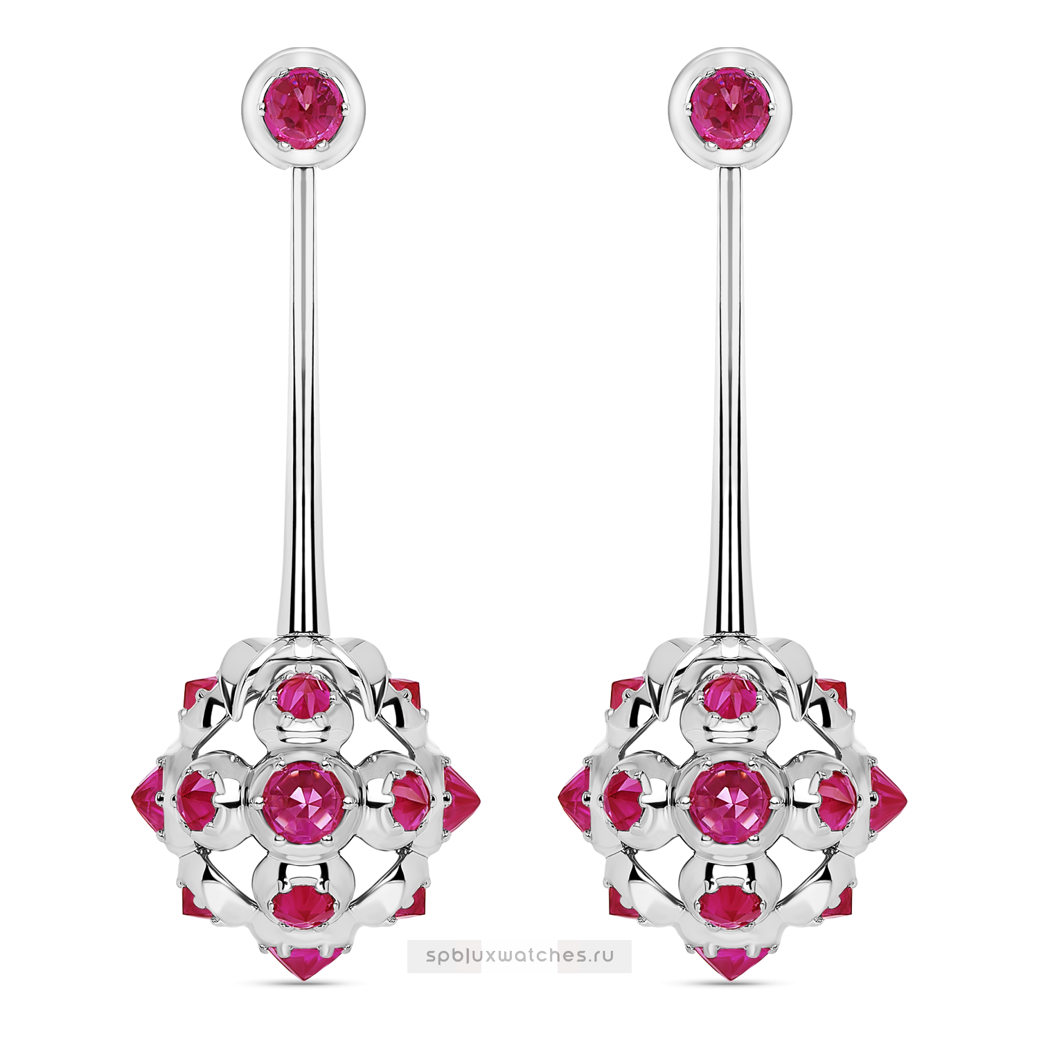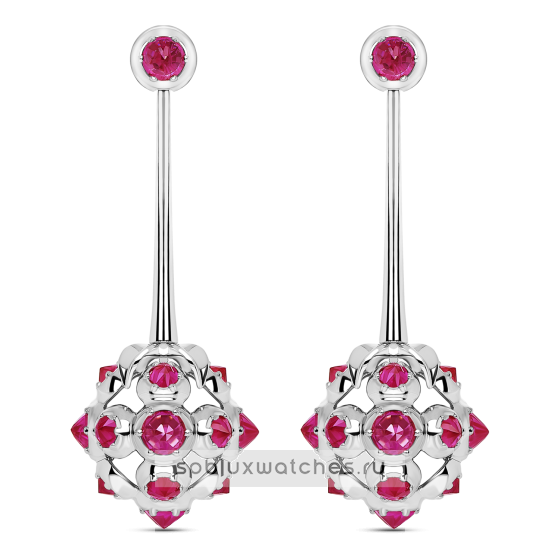 Серьги «Малина» из белого золота 750 пробы с рубинами. Коллекция «Сказочный лес».