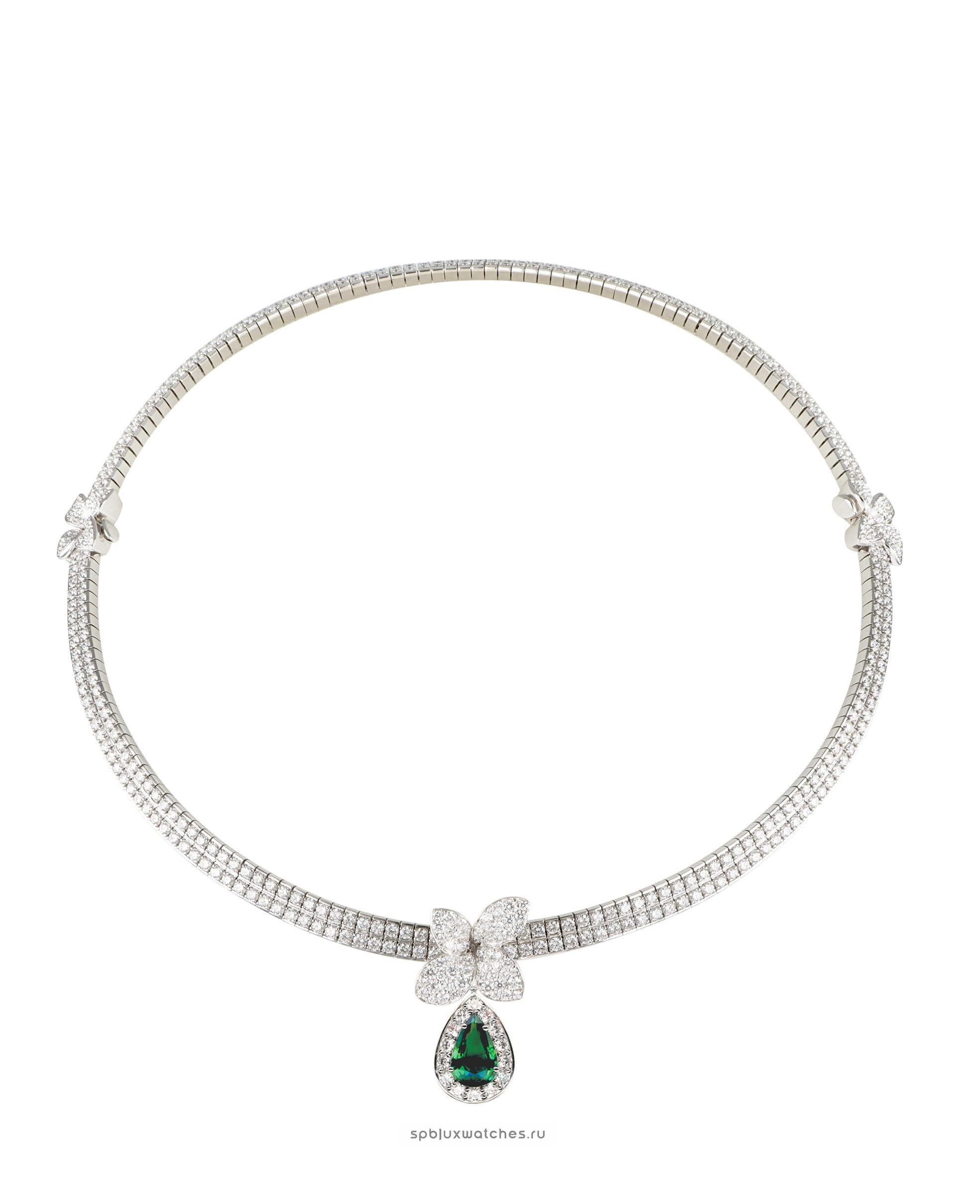Белые бриллианты 13.5 карата, изумруд -