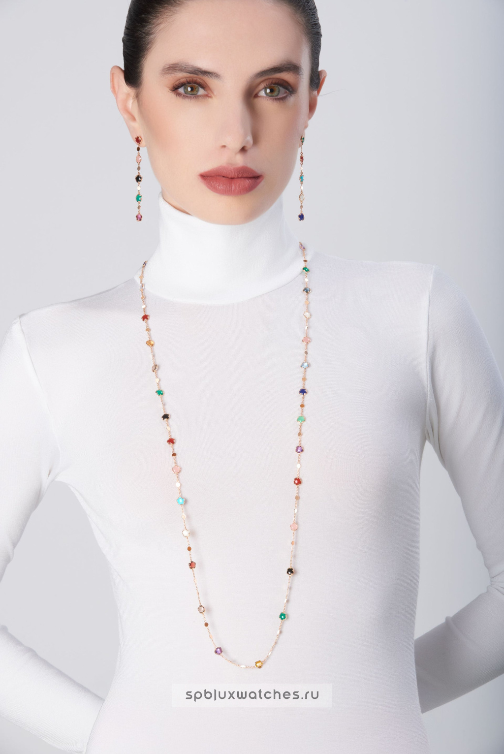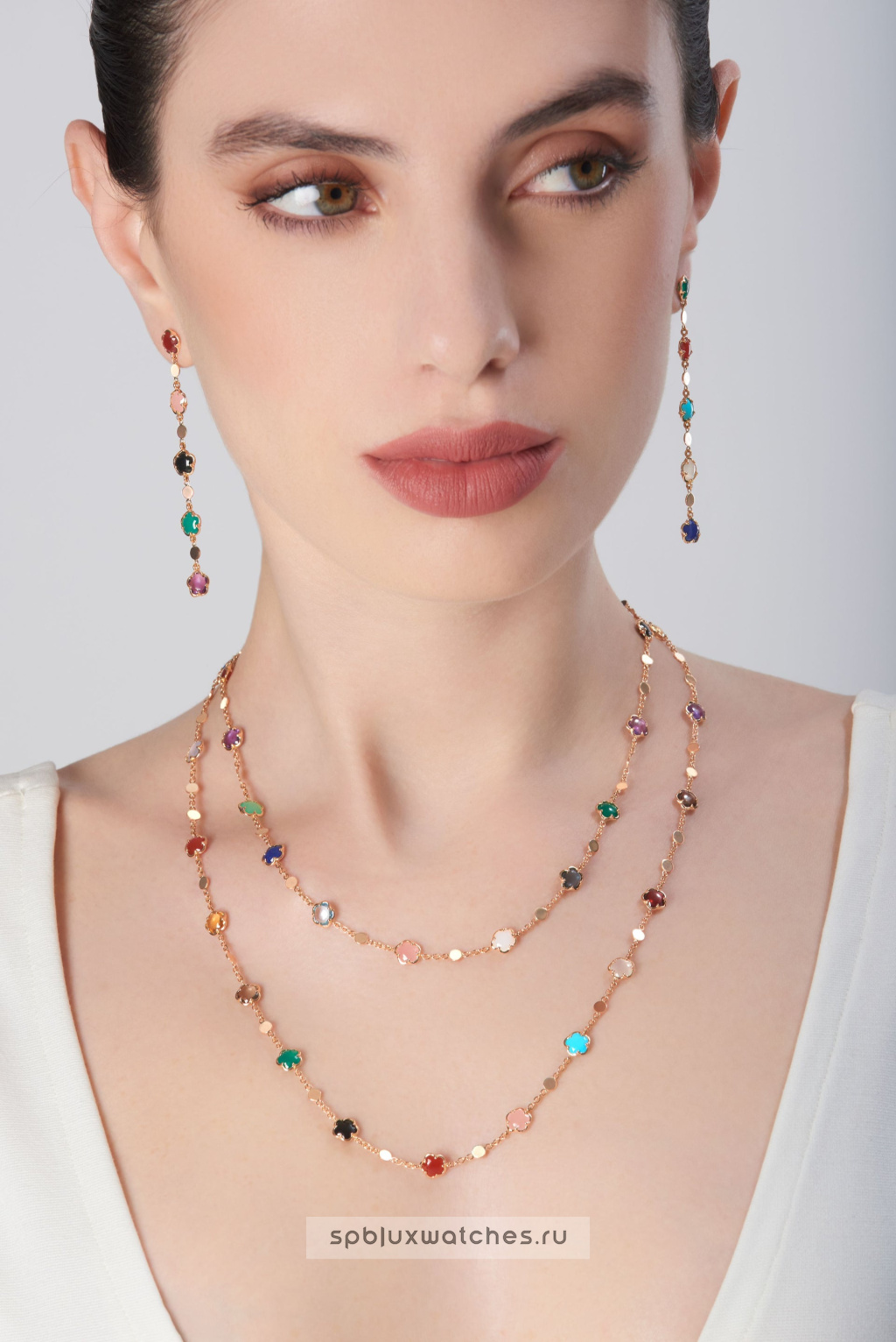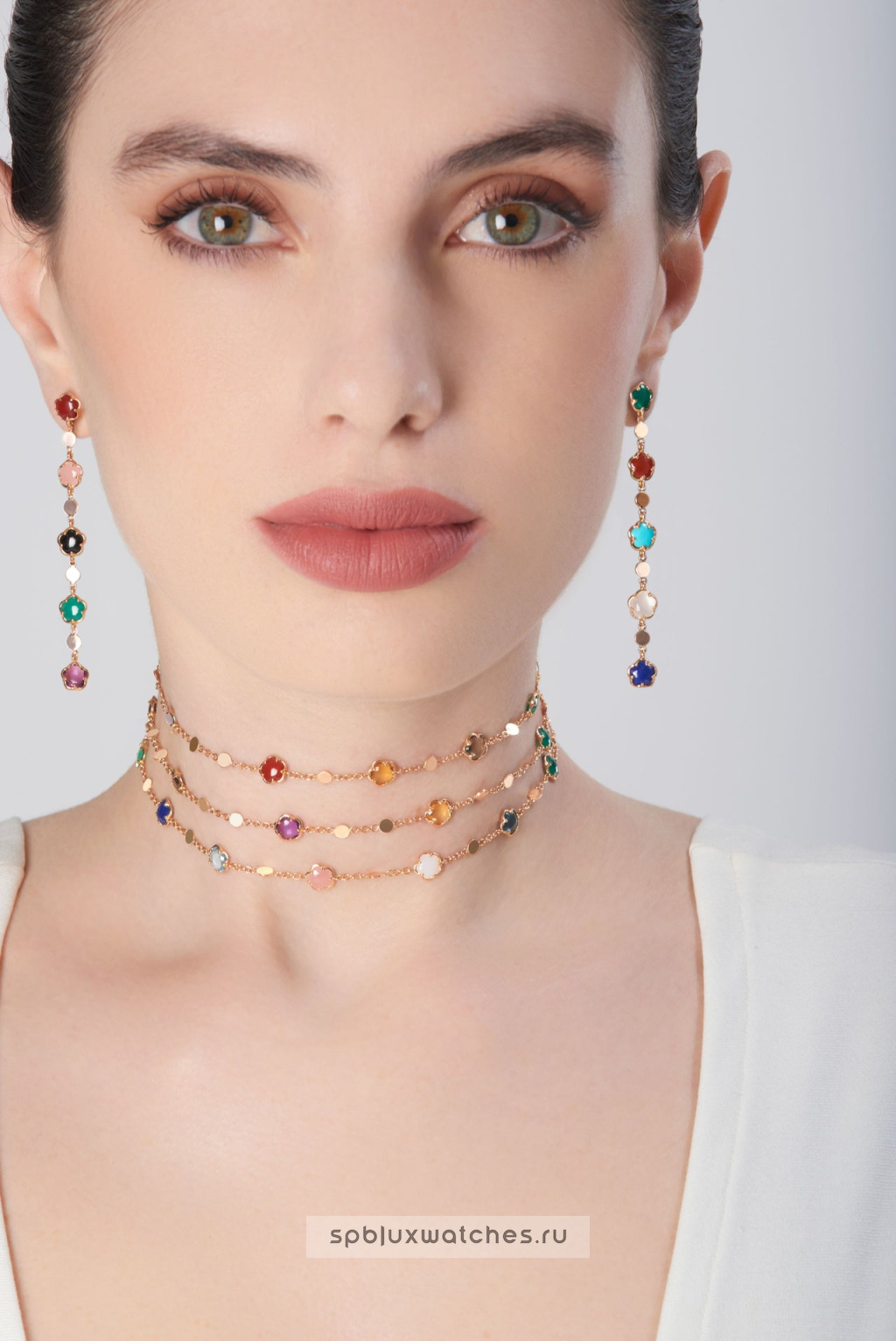 Розовое золото 750-й пробы. Бриллианты, халцедоны, гранатыПод заказ