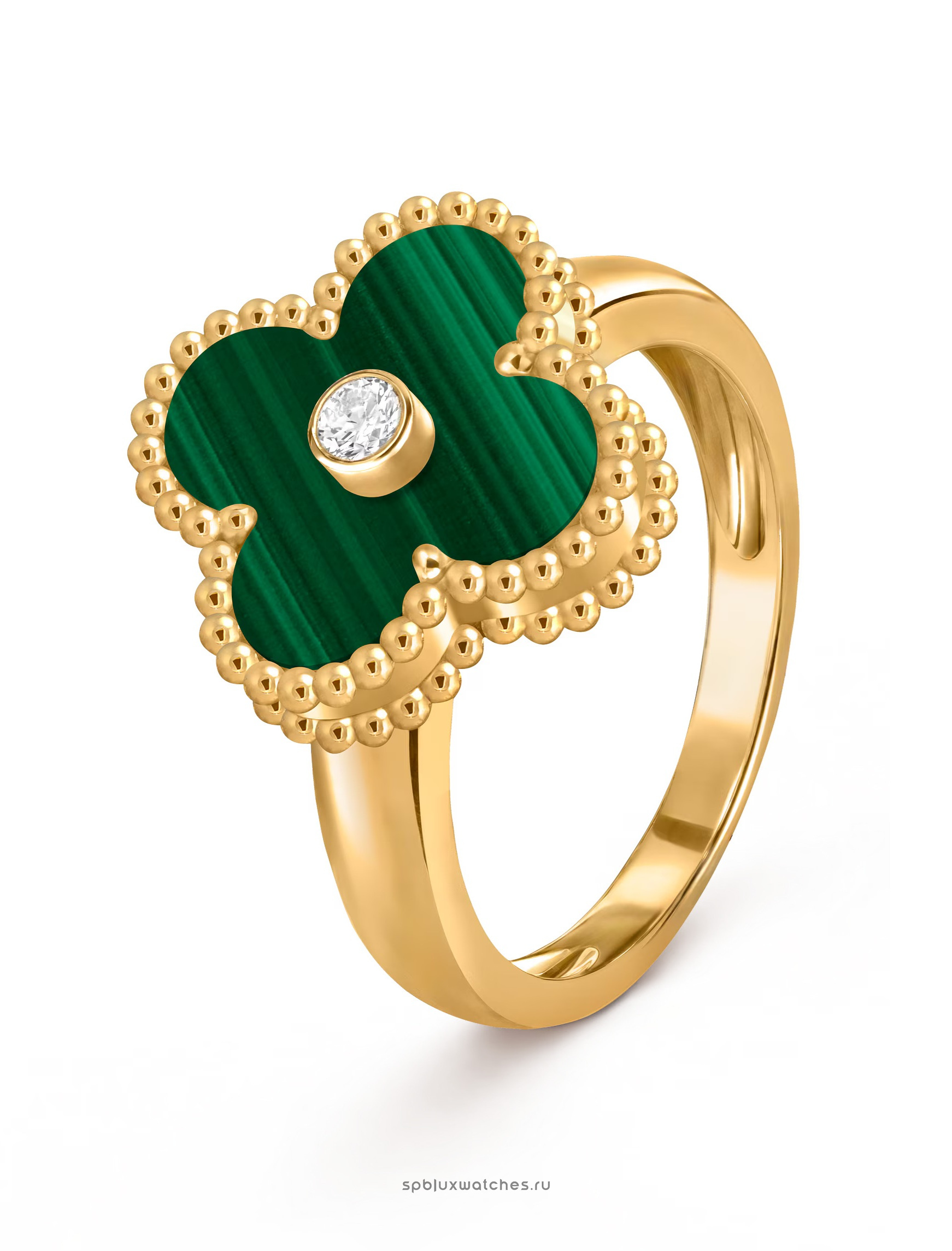 Желтое золото 750-й пробы, малахитПод заказ